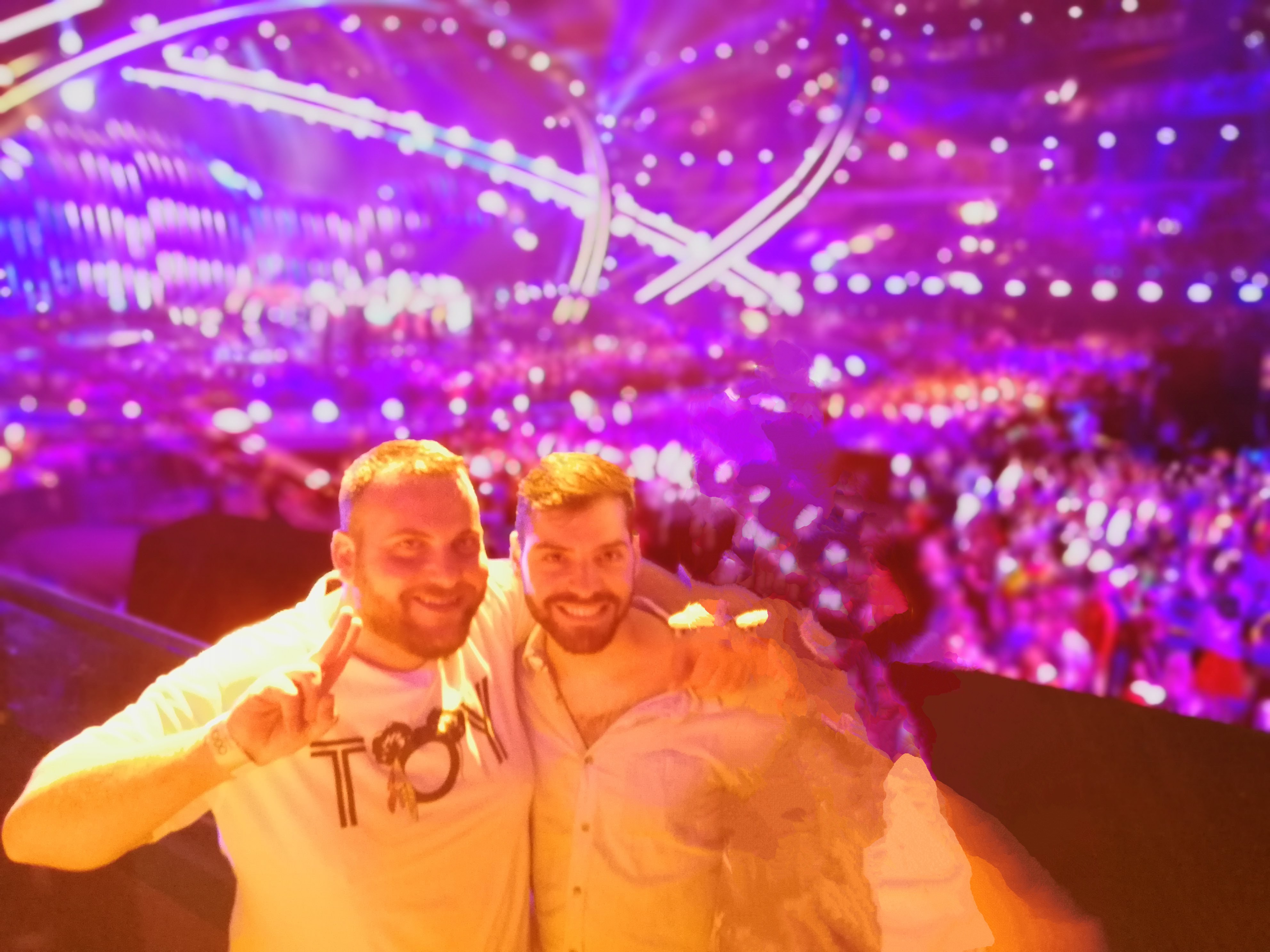 עם חברים בכיכר האירוויזיון בליסבון 2018