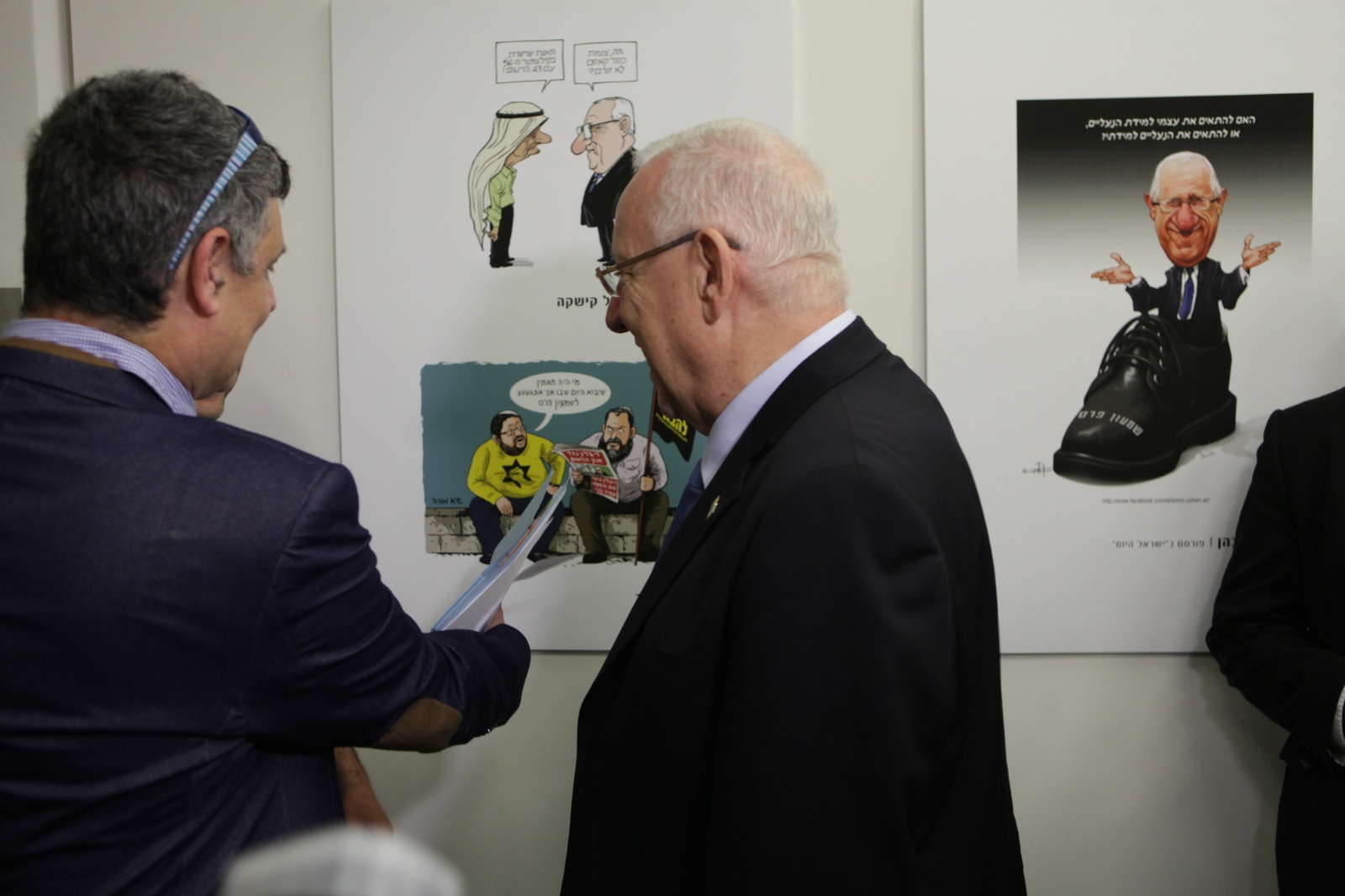 הנשיא ריבלין בפתיחת תערוכת קריקטורות בגלריה של מכללת ספיר: "עם שרוצה להיות רציני בהחלטותיו צריך לדעת גם לצחוק על עצמו"