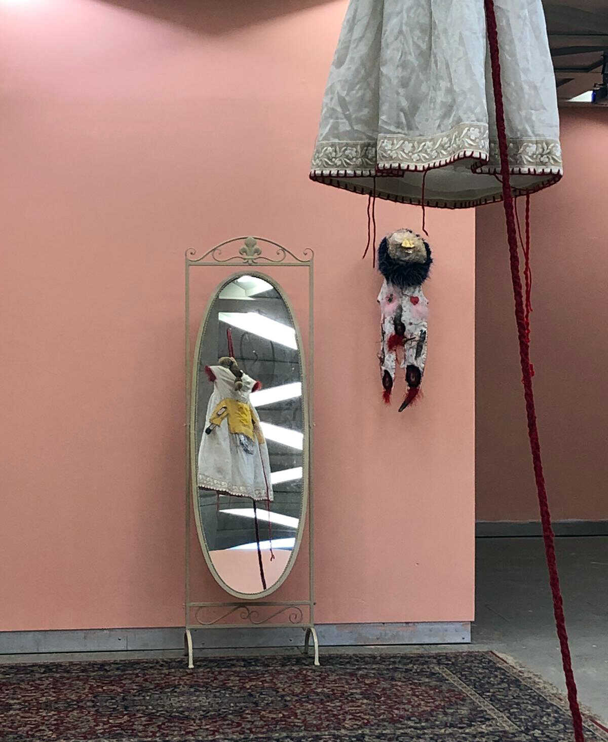 "אדווה דרורי מלבדת צמר, תופרת ורוקמת. אוספת דימויים ומילים לכדי יצירה הפונה אלינו, ומשתפת אותנו בחוויה אשר בה המגע החושי קודם לכל ניסיון פענוח אחר. היצירה נוצרת מתוך צבירה, לישה פיזית ועיבוד רגשי דחוס. האנרגיה שיצרה אותה אחוזה בה לכדי כוח כישופי שעומד באוויר. שטיחי לבד גדולי ממדים ופרומים, פרושים על הרצפה, שמיכות רקומות תלויות על קיר, שנצבע בצבע חול אדמדם. גלימות טלאים המחכות להילבש, ושלל דימויים שנוצרו או נאספו ממלאים את החלל של הגלריה במכללה האקדמית ספיר. אדווה דרורי יוצרת מרחב טקסי רב חושי, אליו חודרים קולות של עבודות וידאו המתעדות סימני דרך בדרכה האמנותית.