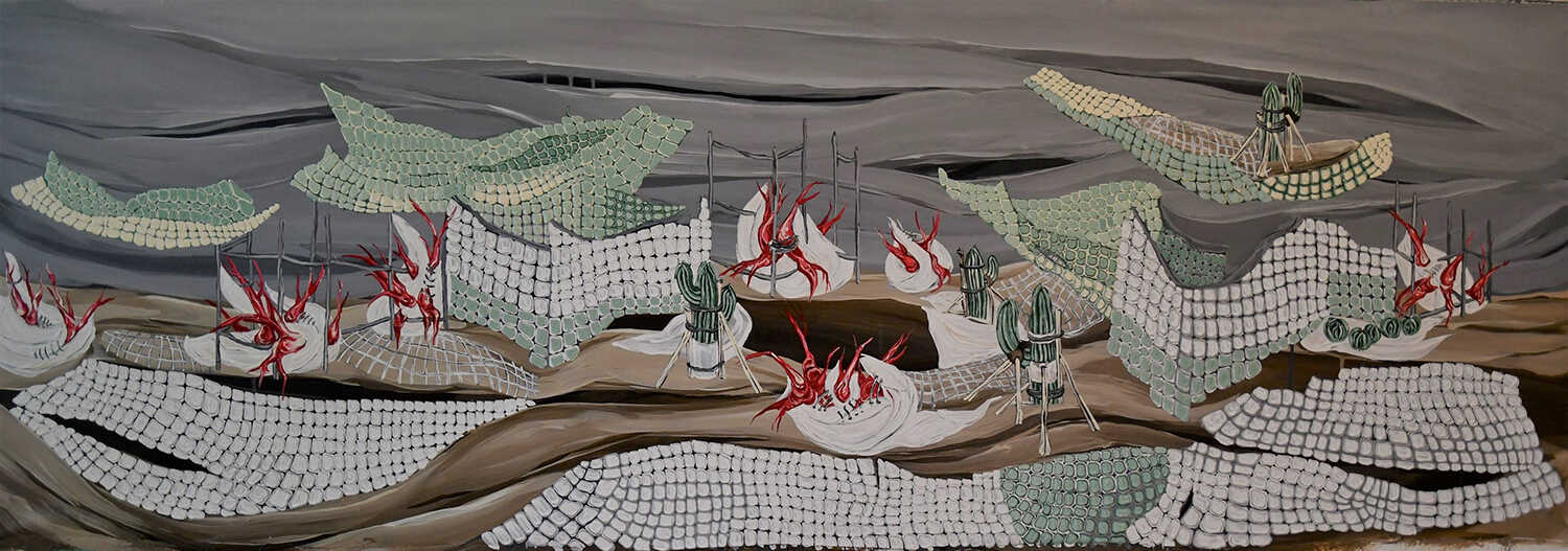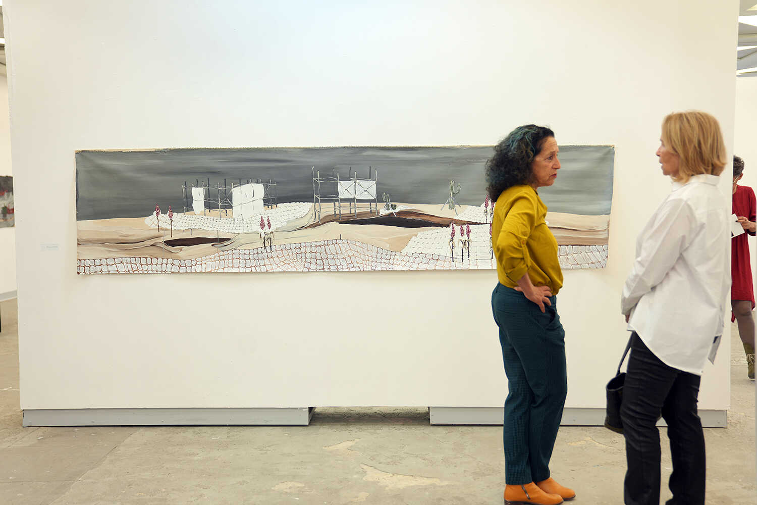 "רק שלא יתפרק לי המדבר" היא תערוכת ציורים ראשונה של האמנית, המוכרת יותר בעבודות הפיסול והמיצבים שלה. על קירות חללי הגלריה נפרשים ציורים פנורמיים וטקטיליים באקריליק על יריעות בדים לא-מתוחים, של נופי מדבר בדיונים, מעורערים, מתפרקים ופצועים, התלושים וקרועים מזמן, מרחב או אירוע קונקרטיים. יריעות זמן ומרחב של פנורמות חסרות כוח כבידה, שיש בהן אילמות וחרדה קיומית מהתפרקות הזמן והמרחב הממשי, הנפשי והגופני.