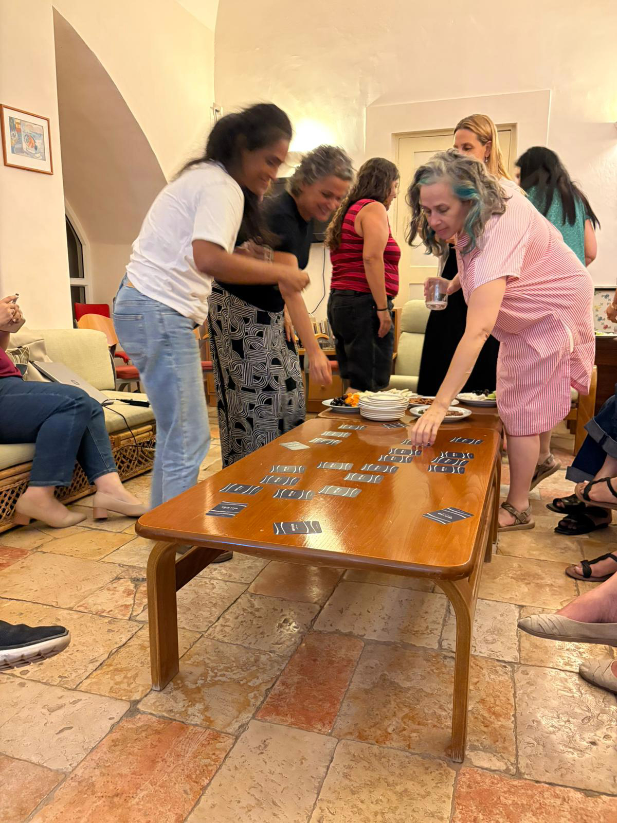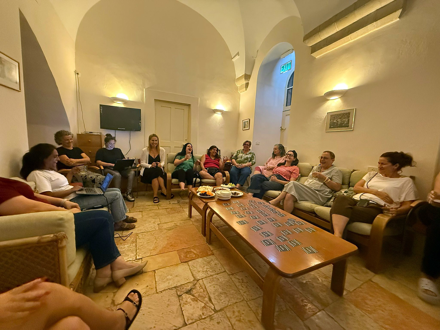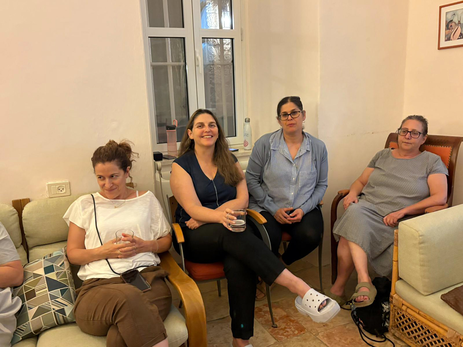 לקחנו כמה אתנחתות מהעבודה האינטנסיבית עם פעילות חברתית וחילוץ עצמות. בערב הראשון הנחתה חברתנו, ד"ר רונית נדיב, ערב של קלפים, גבינות ויין, והובילה שיח משתף ואופטימי על החיים. בערב השני הגחנו מבין החומות להופעה של אהוד בנאי ויהודה פוליקר ביריד "חוצות היוצר" (המניפות מערכת ה"רוניתריט" התגלו כשימושיות מאוד!). בערב השלישי שמענו הרצאה של ד"ר מירי מוהבן שקד על הקולנוע האירני, עם הרבה דוגמאות. למדנו הרבה וקיבלנו המלצות צפייה להמשך.