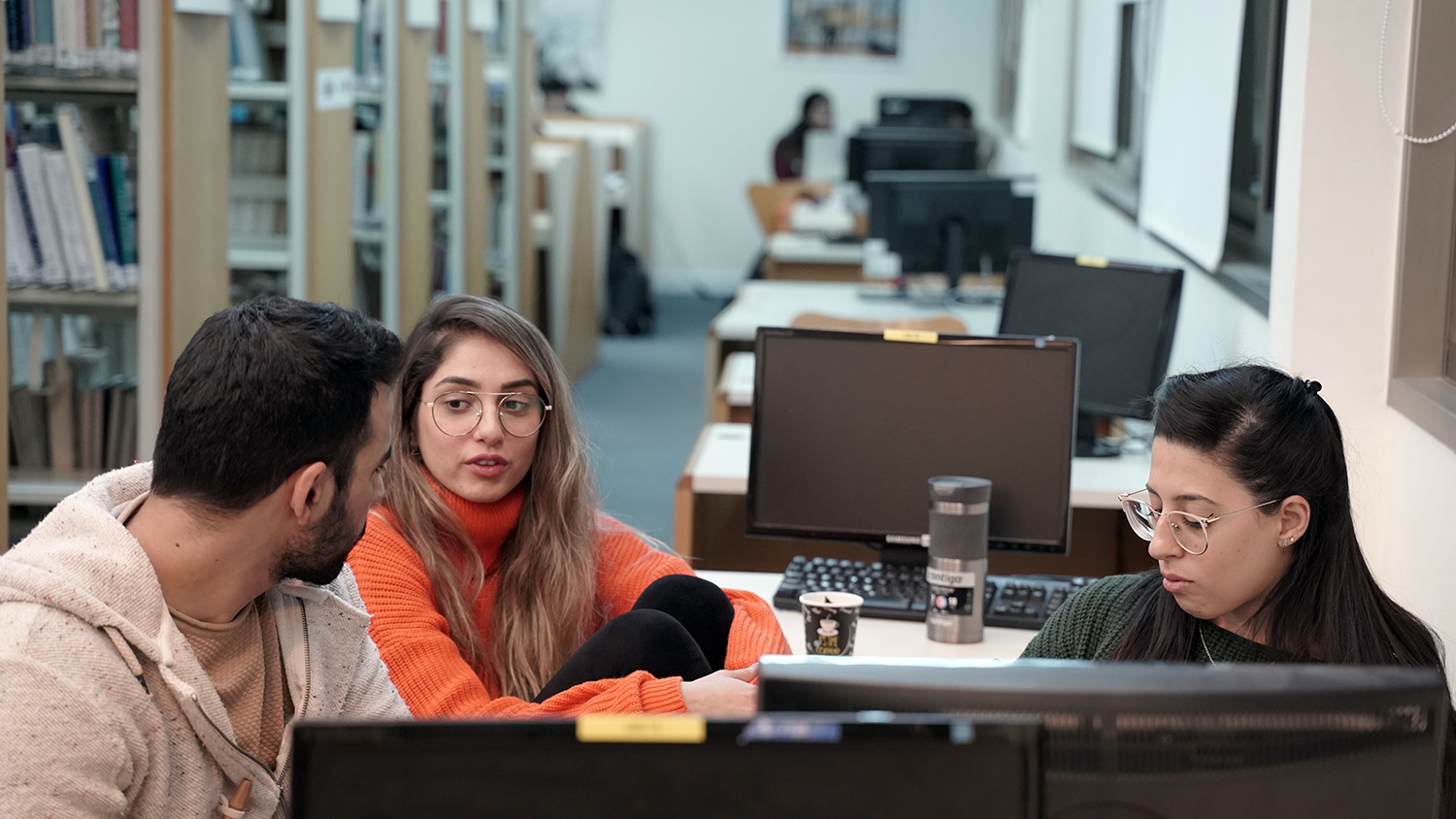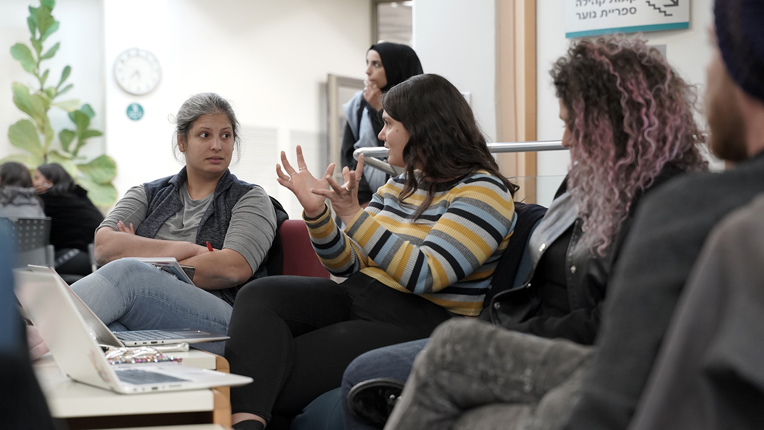 סטודנטים ומרצה במעבדת ח"י ספיר בספריה