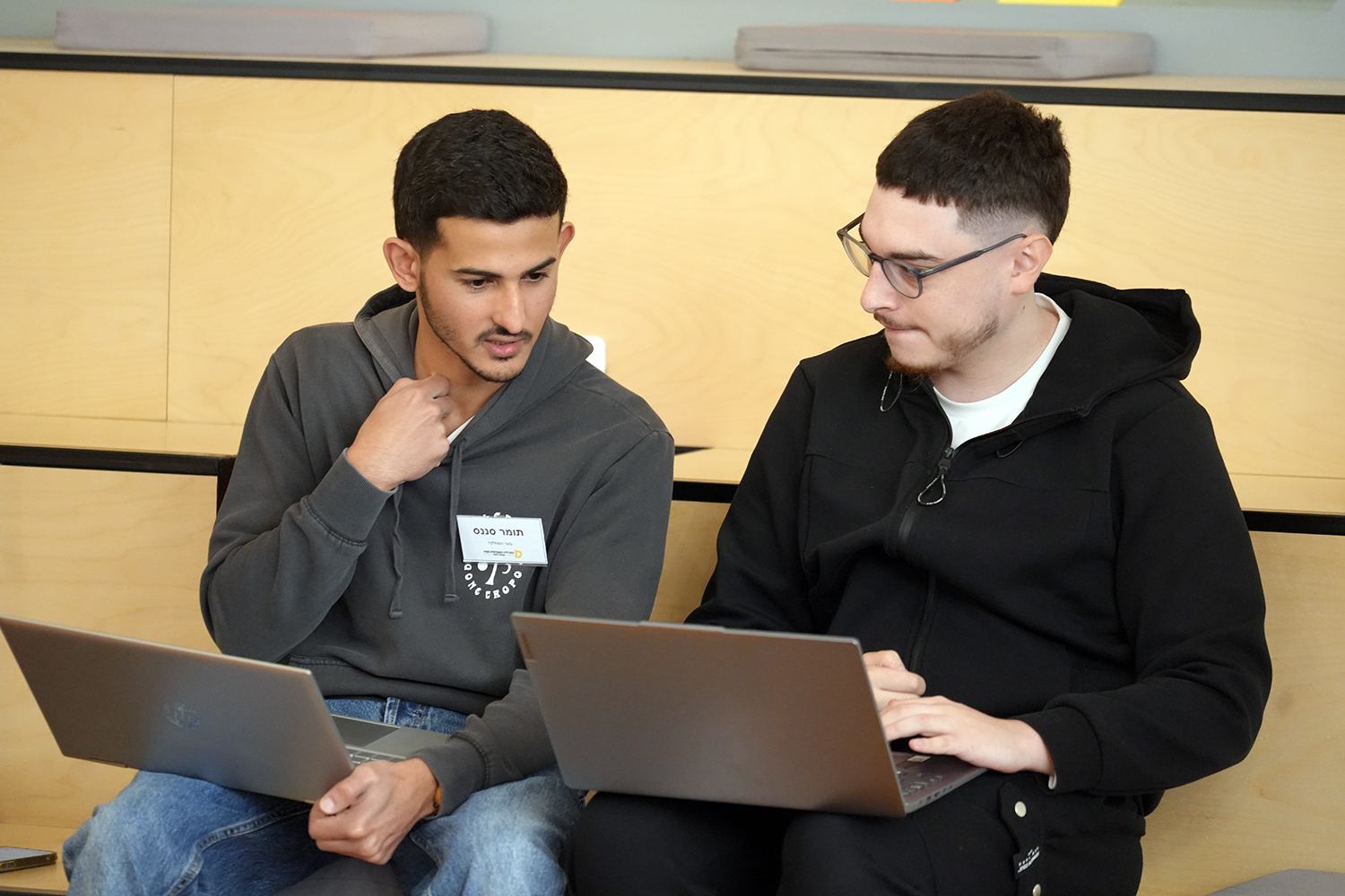 עמוד הבית יום קוד ינואר 2026 המחלקה למדעי המחשב כמידי שנה, נערך יום קוד משותף במחלקה למדעי המחשב. תלמידי המחלקה מכל השנים הצטוותו בקבוצות ועבדו על משימות כתיבת קוד בצורה חווייתית כדי לפתח את יכולות הקוד שלהם. צילום: נועה דוידיאן