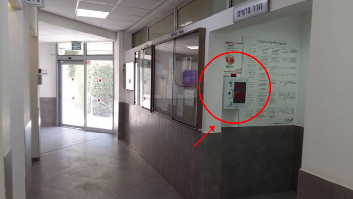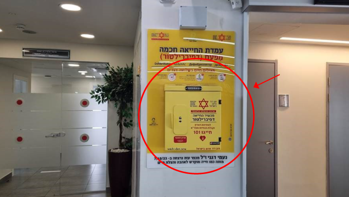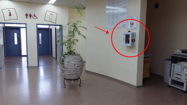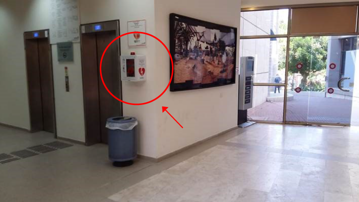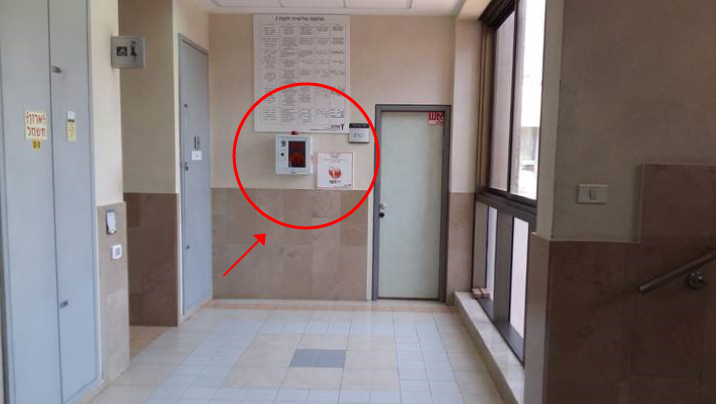 מיקומי דיפיברילטורים (מפעמים) בקמפוס