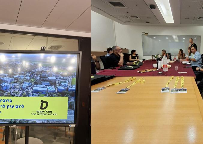 חברות וחברי המשלחת הגיעו לספיר אחרי ביקור באתר הנובה ונפגשו עם ד"ר אורי לב, דיקן לעניינים אקדמיים ועם לימור פלנטר פרן, ראש המשרד הבינלאומי.